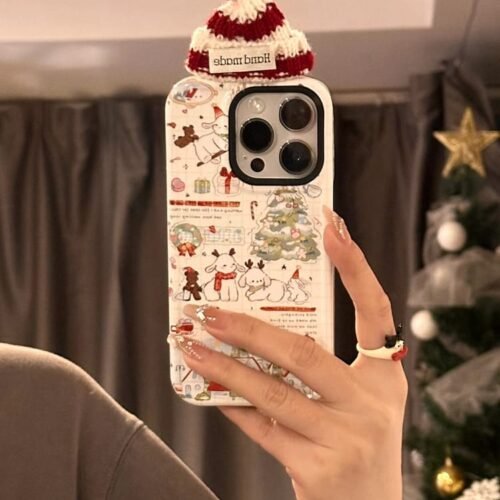 Get cozy this holiday season with the “Christmas Cartoon Sheep in Knitted Hat” hard shell 2-in-1 full protection case for