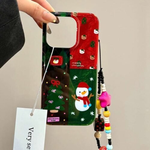 Celebrate the holiday season with this “Red & Green Christmas Tree and Scarf Snowman Patchwork” silicone phone case for your