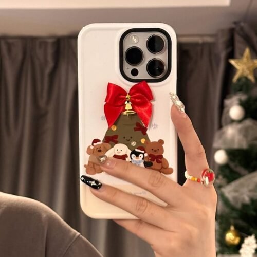 Christmas Tree with 3D Bow Hard Shell 2-in-1 Case – Festive iPhone Protection for iPhone 11/12/13/14/15 Pro Max