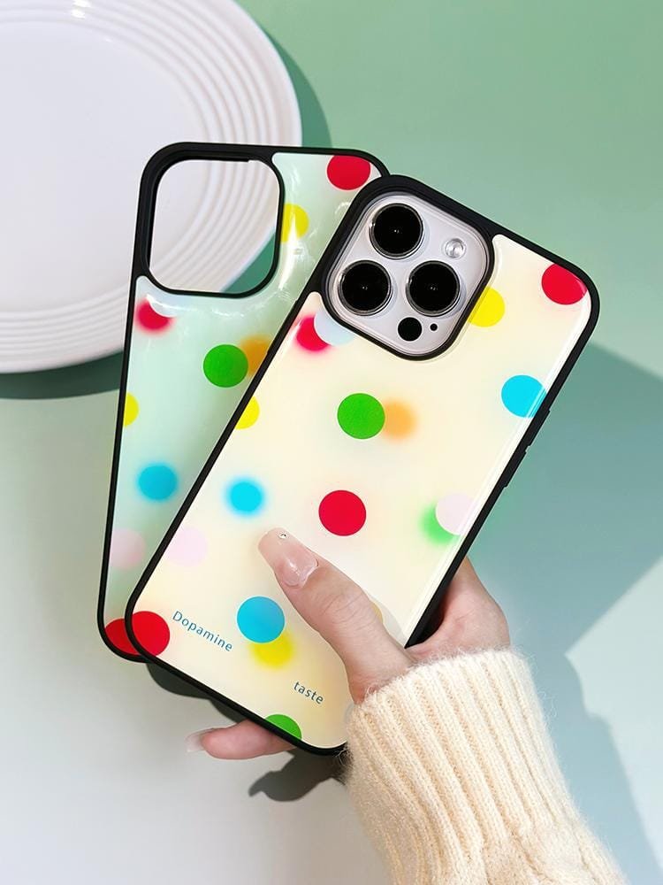Apple iPhone 16 Pro Max Colored Polka Dots on Cream Background Phone Case – Fits iPhone 16/15/14/13/12/11