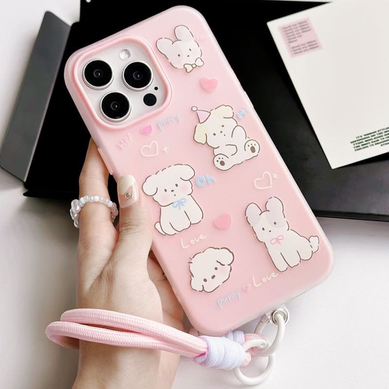 Apple 16 phone case 14promax skin feeling jelly suitable for 12 cartoon 11 carrying strap iPhone15 wholesale