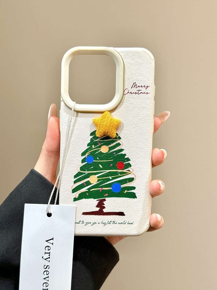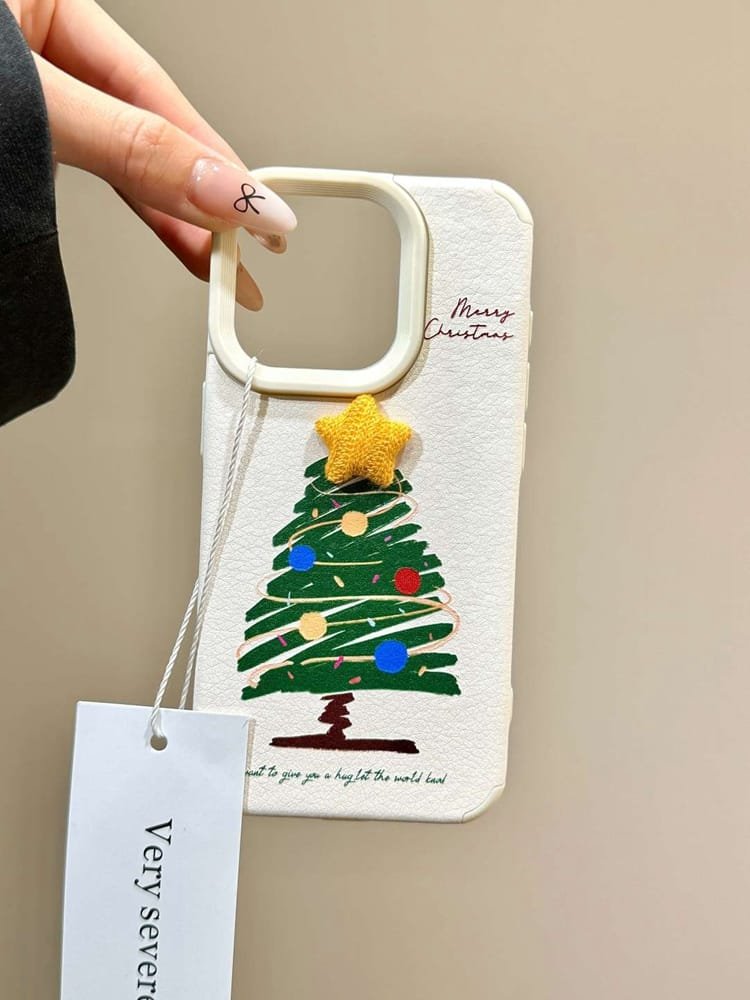 - Compatible with iPhone 16/15/14/13/12/11, the textured leather-like finish features a 3D Christmas tree adorned with stars and polka dots, perfect for festive flair 🎅✨.