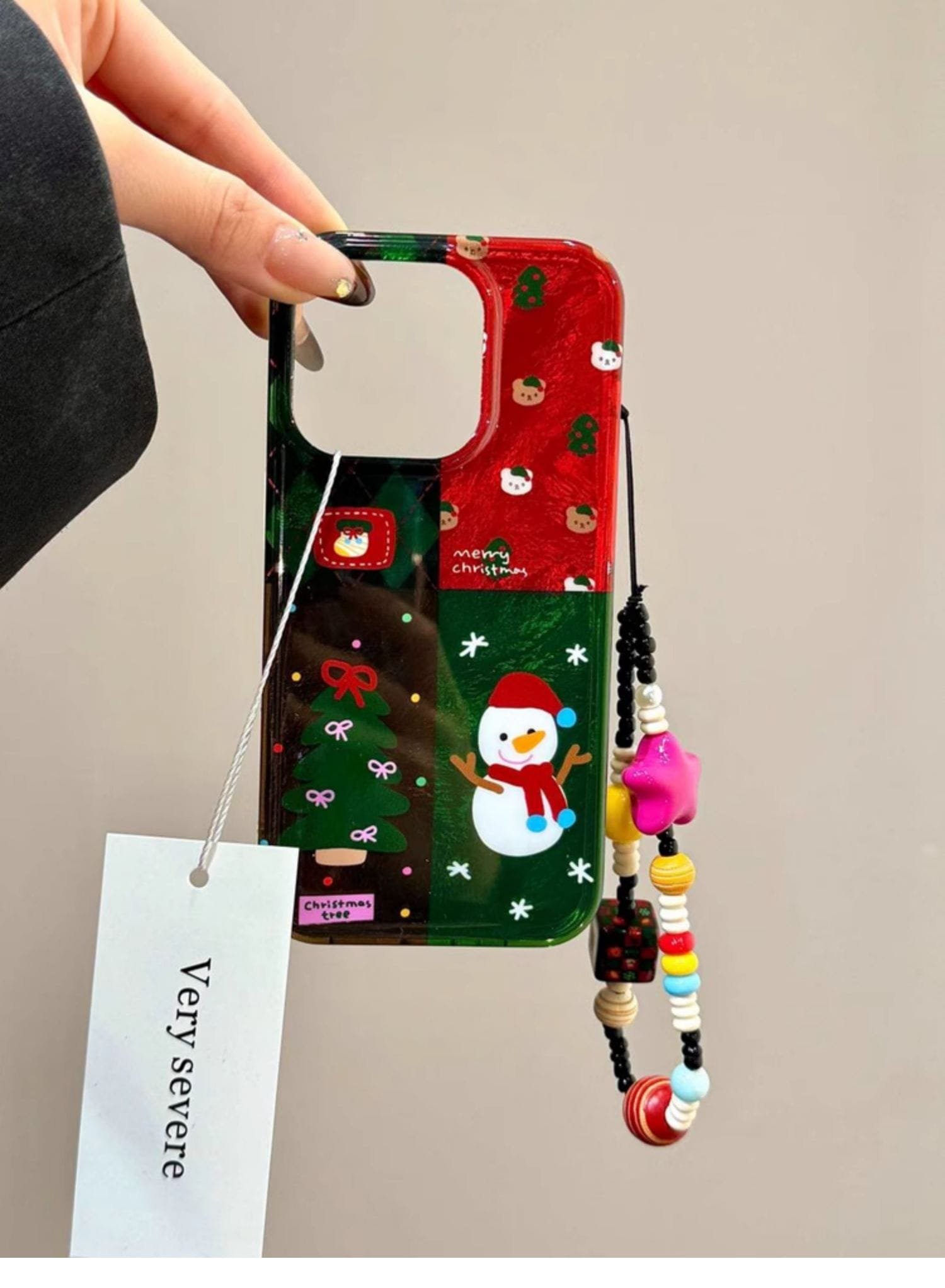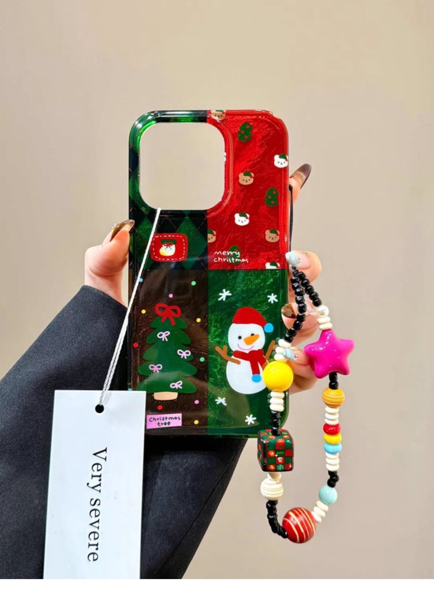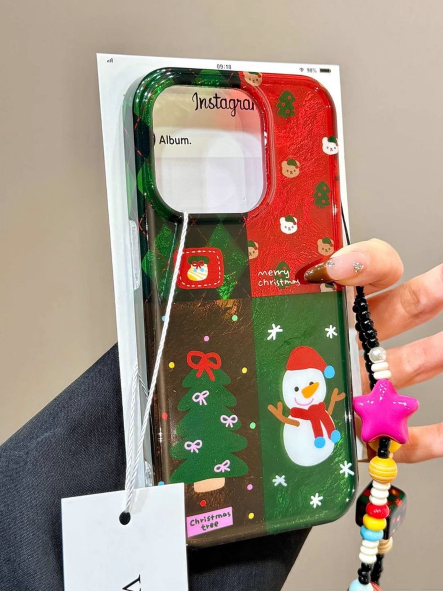 - Compatible with iPhone 16/15/14/, the red and green patchwork design with a Christmas tree and cozy scarf snowman adds cheerful holiday spirit to your phone 🎅✨.