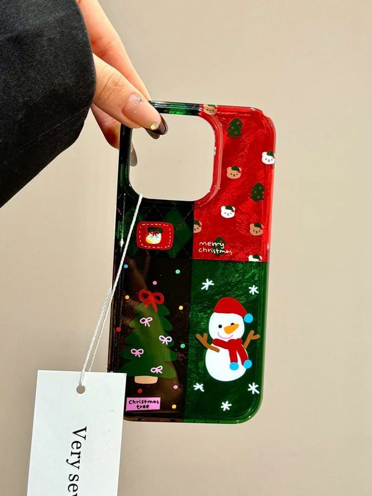 - Compatible with iPhone 16/15/14/, the red and green patchwork design with a Christmas tree and cozy scarf snowman adds cheerful holiday spirit to your phone 🎅✨.