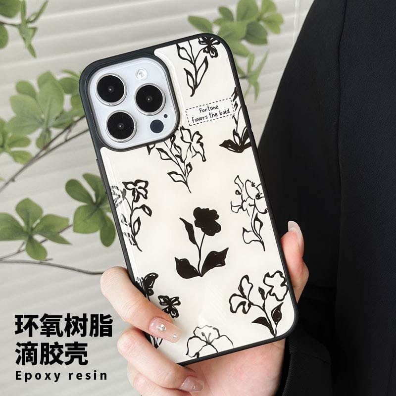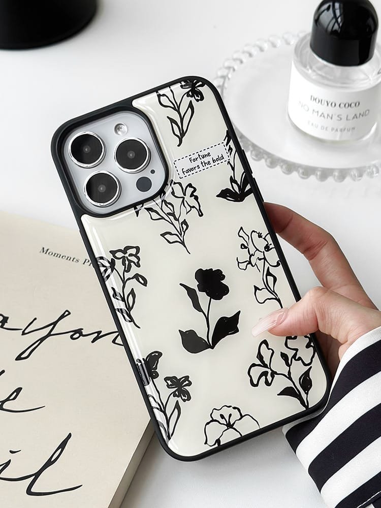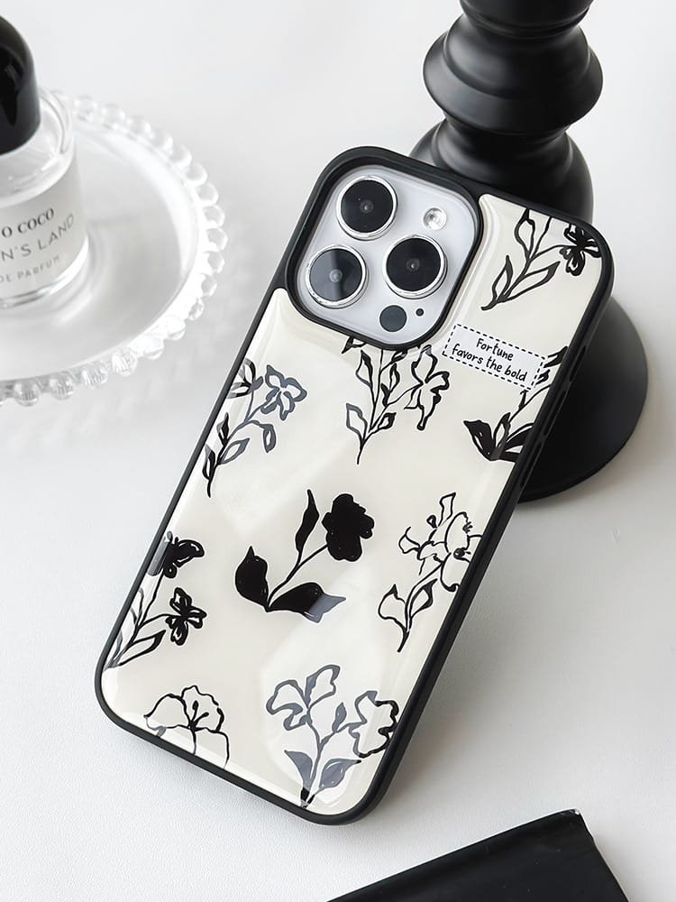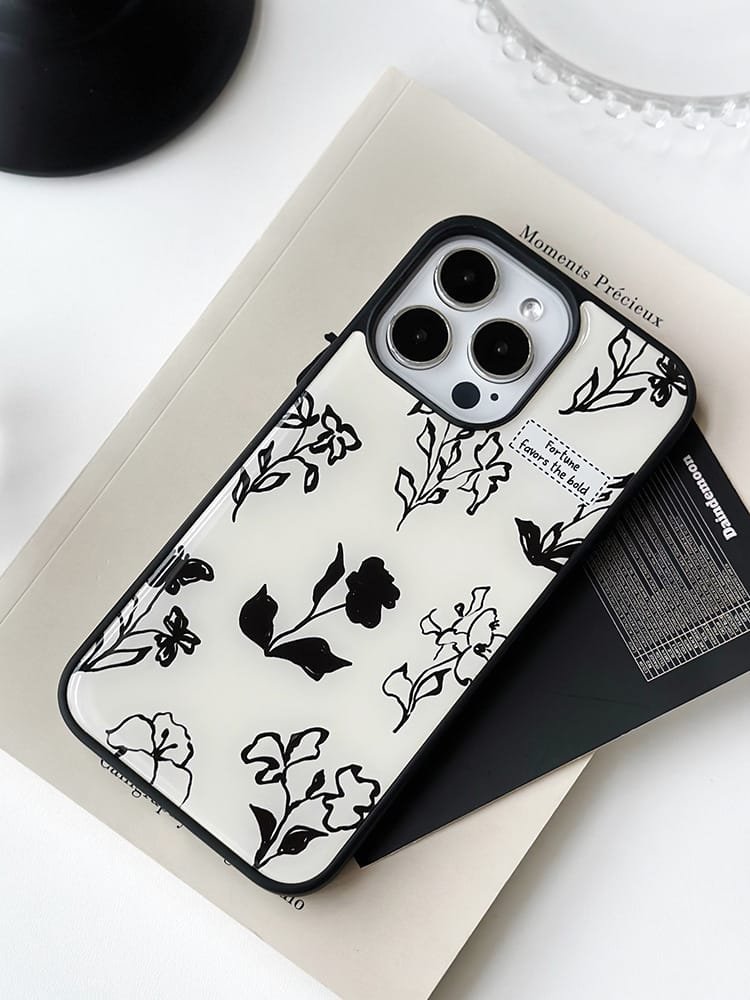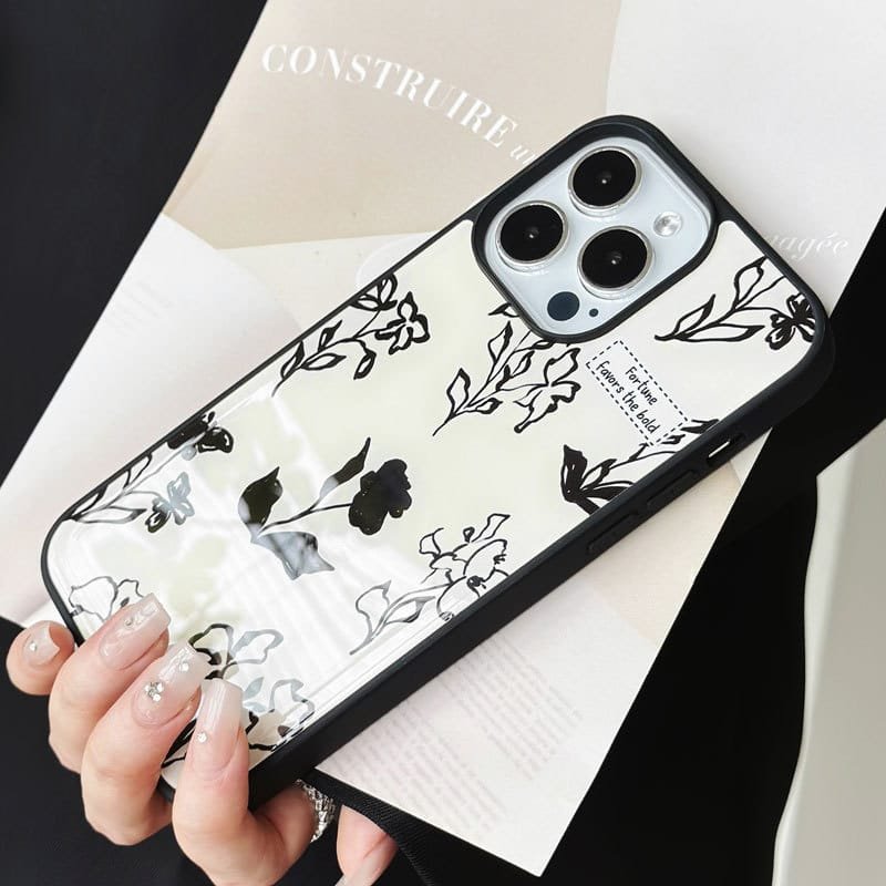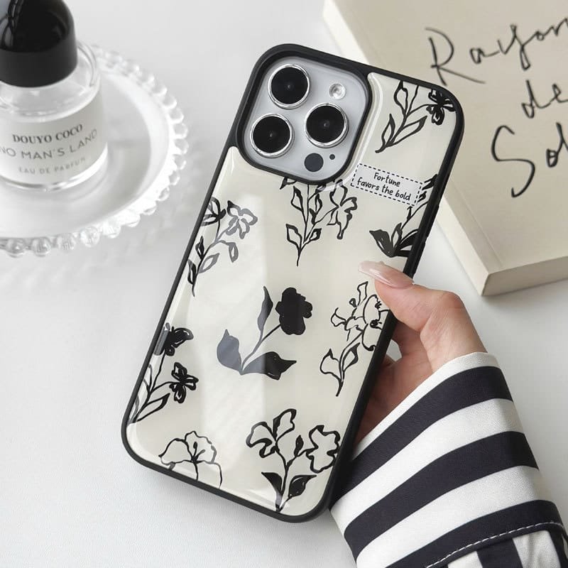 Compatible with iPhone 16/15/14/13/12/11, it features a classic black and white floral design that blends timeless elegance with modern style 🖤⚪.