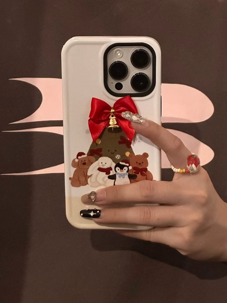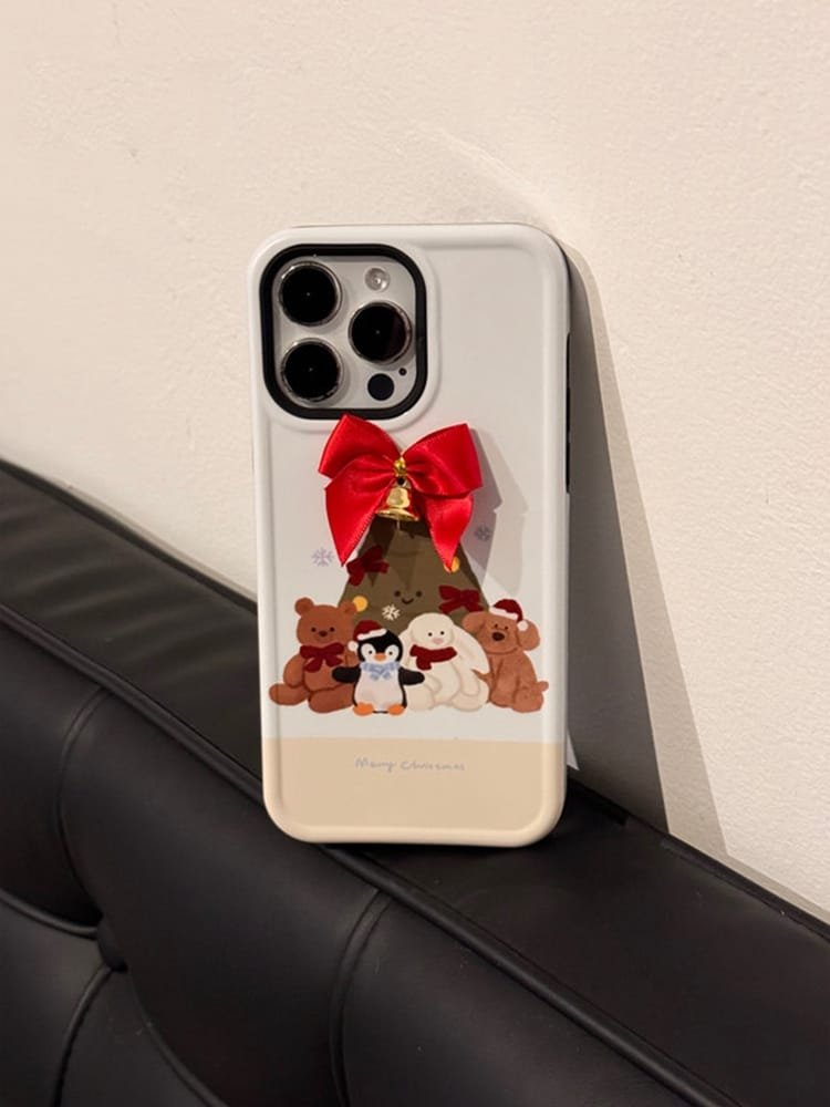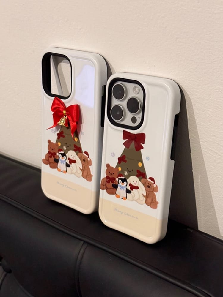 Celebrate the holidays with this charming “Christmas Tree with 3D Bow”hard shell 2-in-1 case for your iPhone 🎄🎀.