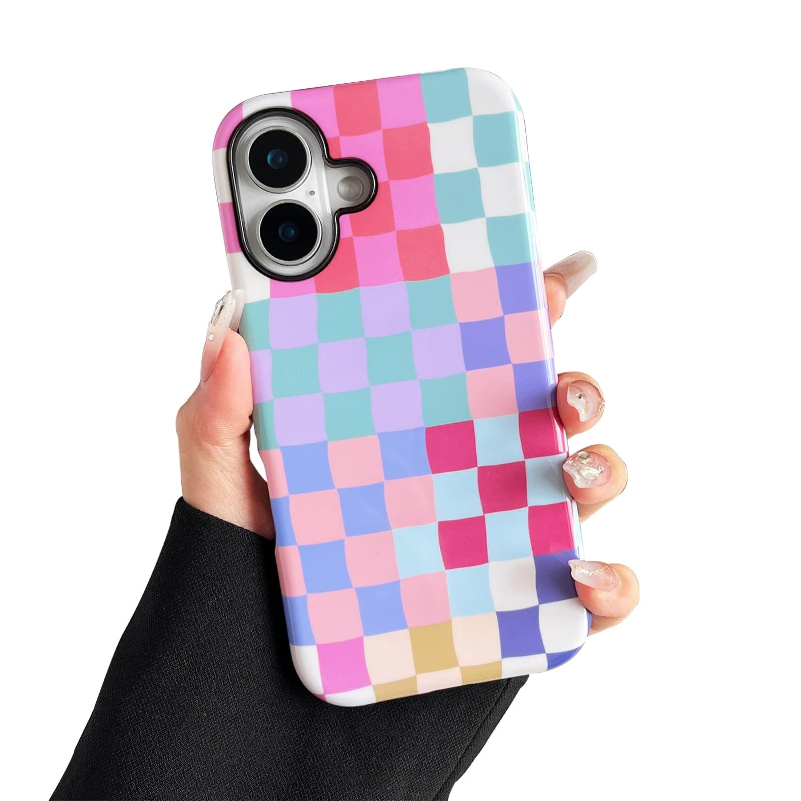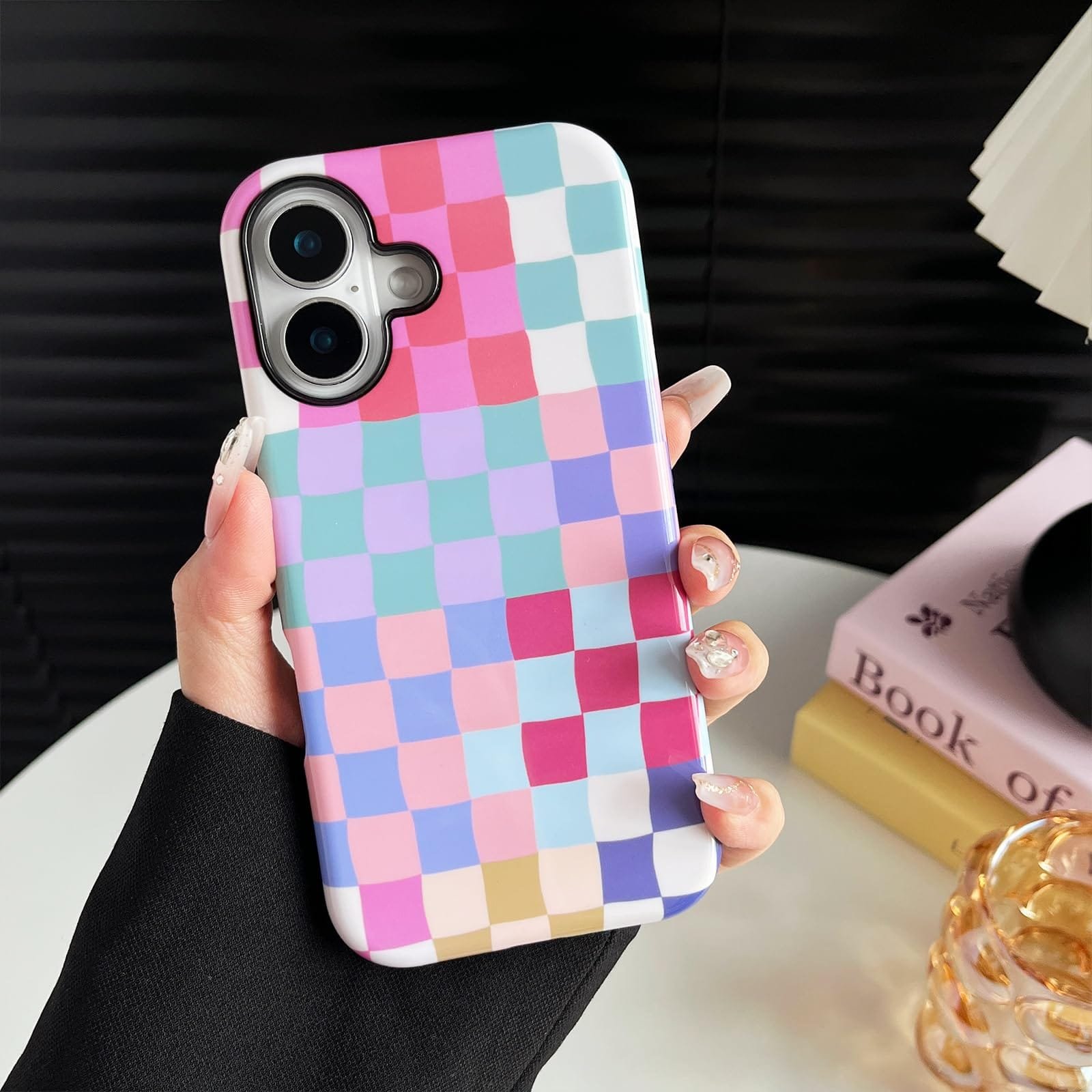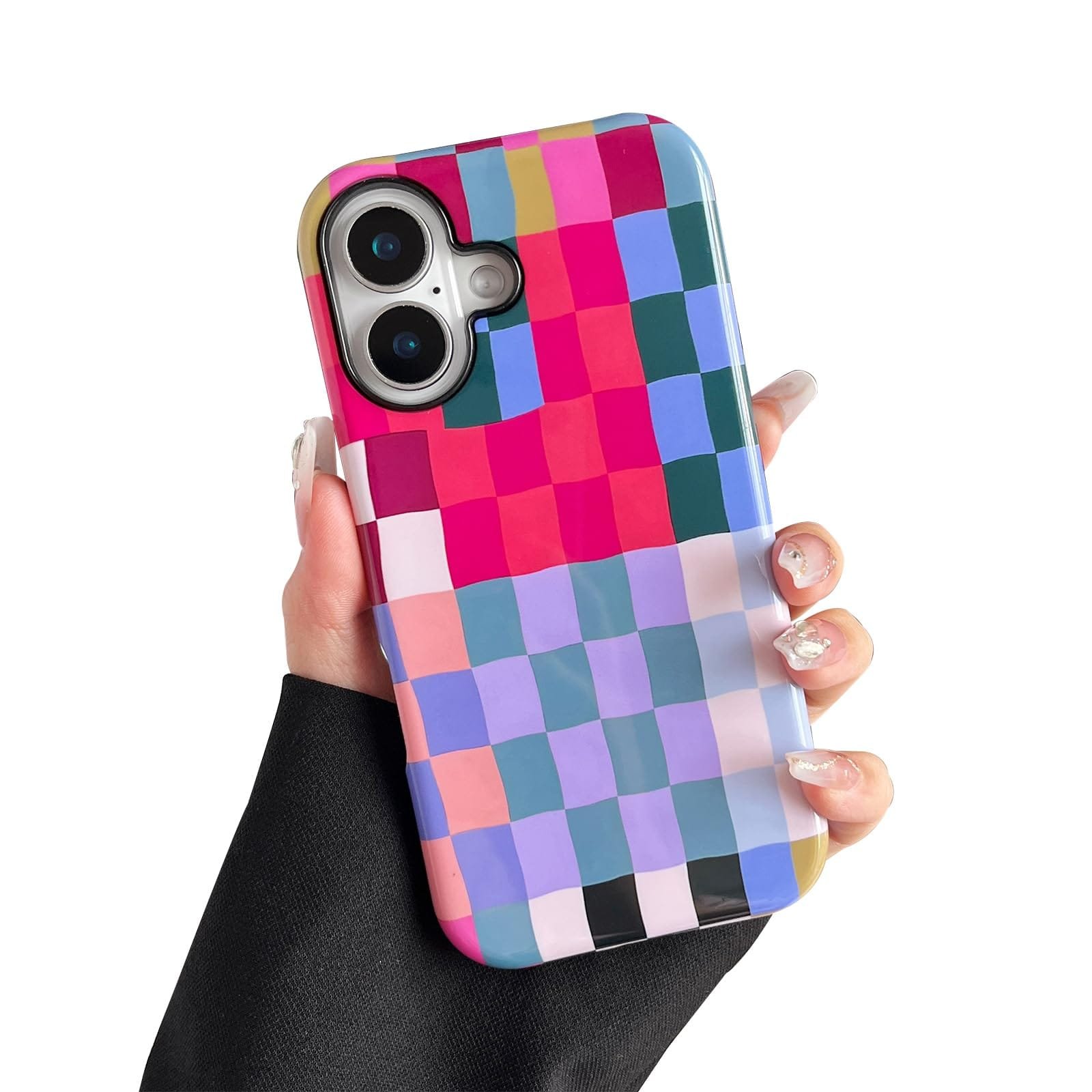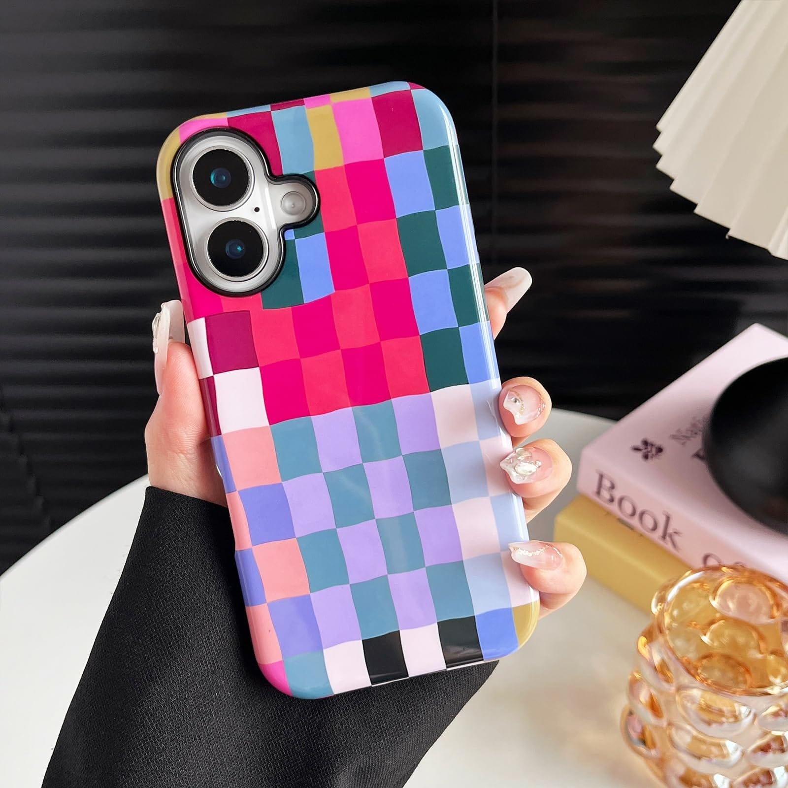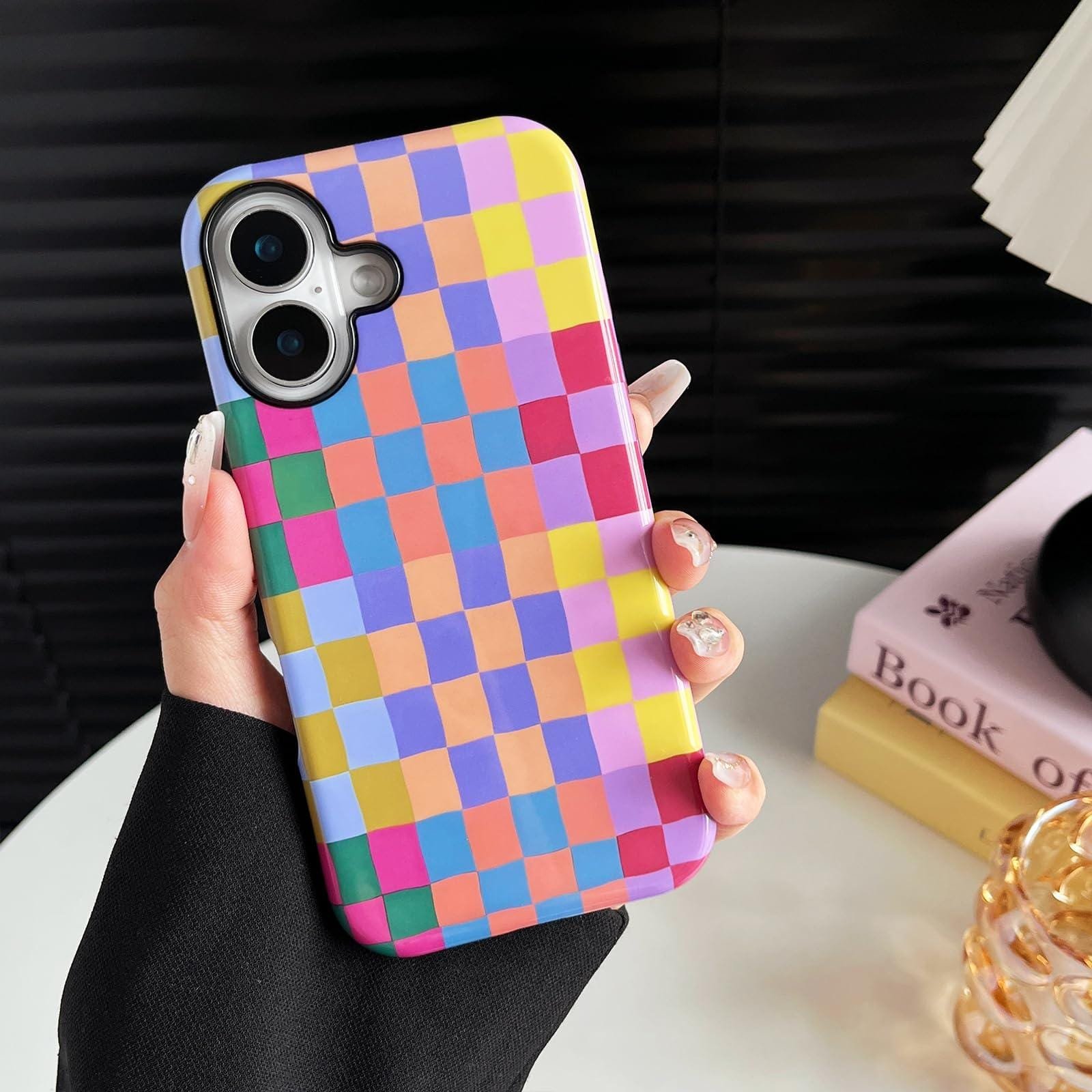iPhone 16 Pro Case ,Cute Simple Colorful Checkered Case