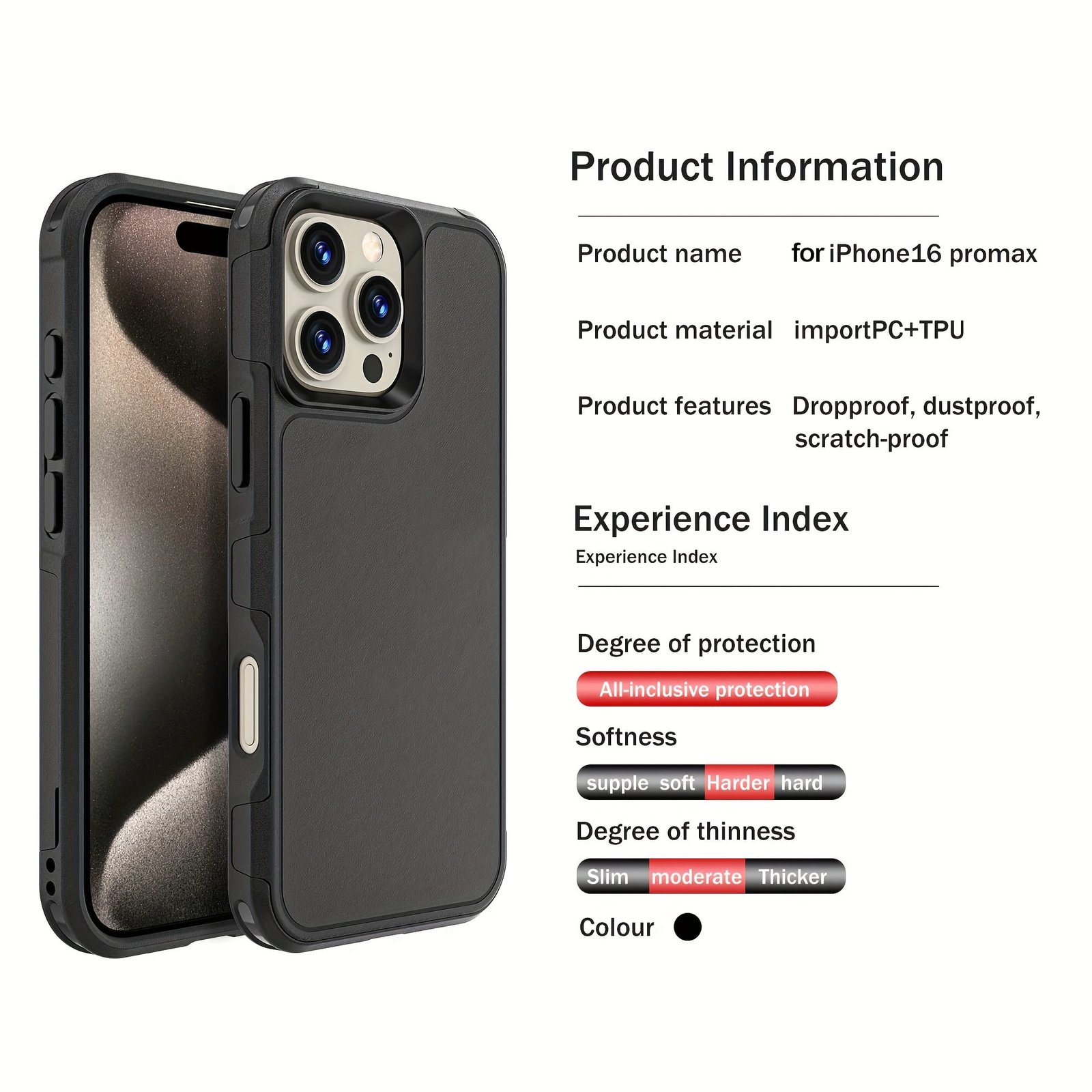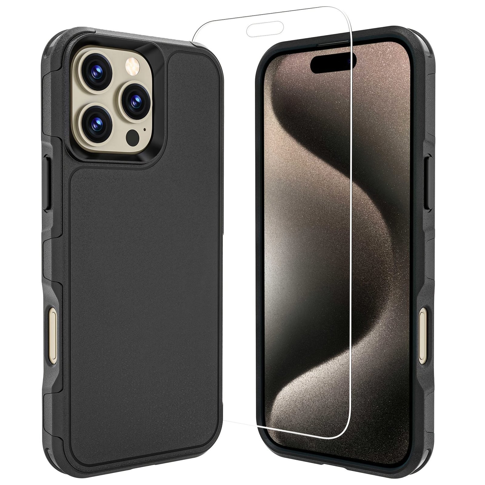 iPhone 16 Pro Max phone case,[14 feet drop protection],1X [tempered glass screen protection film] with air bag, double layer Case for iPhone 16 Pro Max-6.9